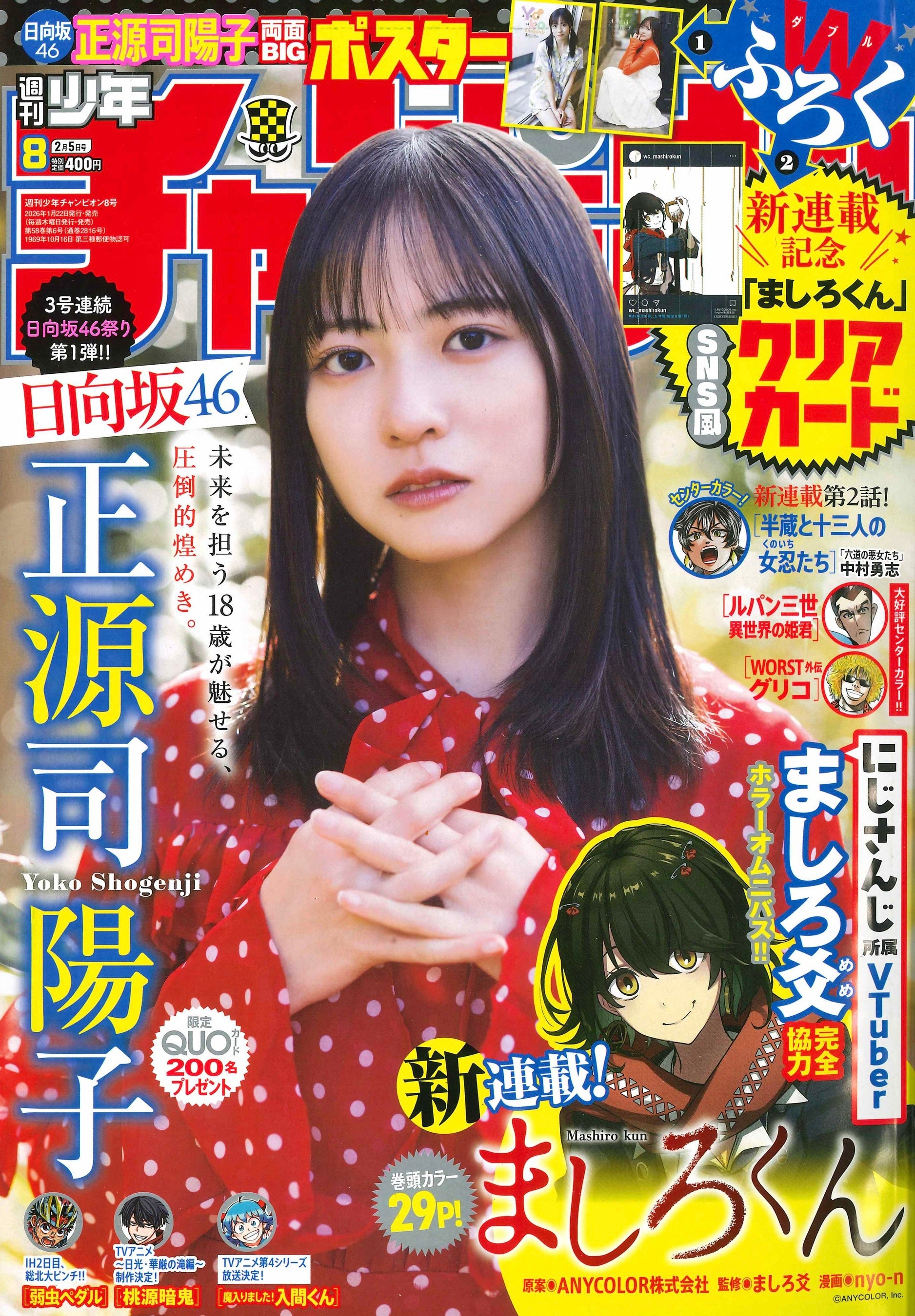 株式会社秋田書店(所在地:東京都文京区、代表取締役社長:山口徳二)は、発行している週刊少年漫画誌『週刊少年チャンピオン』(編集長:松山英生)1月22日(木)発売の8号にて、表紙&巻頭グラビアに日向坂46の正源司陽子さんが登場することをお知らせいたします。両面BIGポスター付録&限定QUOカード200名プレゼント企画も実施いたします。