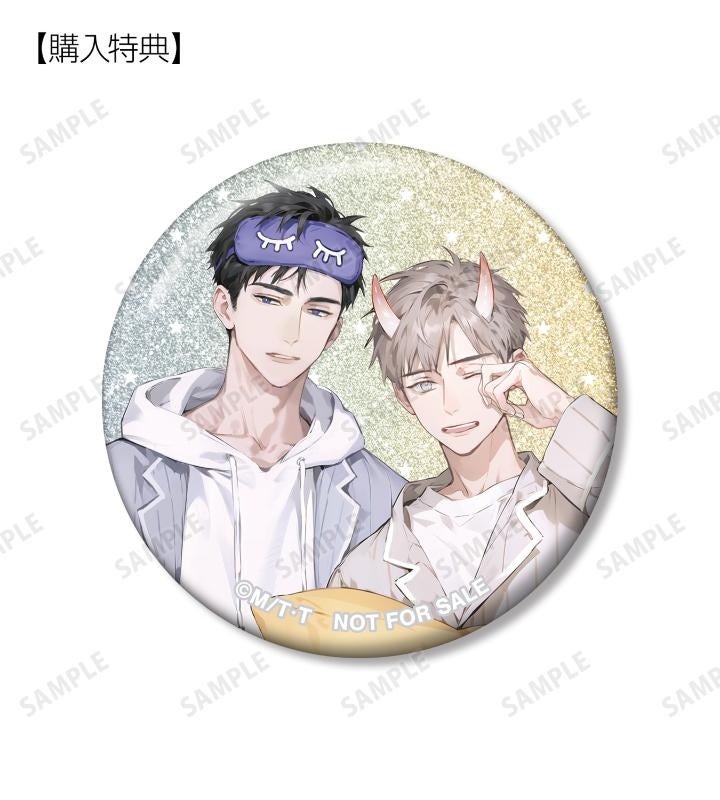 当商品を1BOX、または単品にて1BOX相当数ご注文ごとに、予約購入特典として「MAE先生 描き下ろし 陸野 延賀&景山 侑 パジャマver. グリッター缶バッジ AMNIBUS限定特典」を付属いたします。