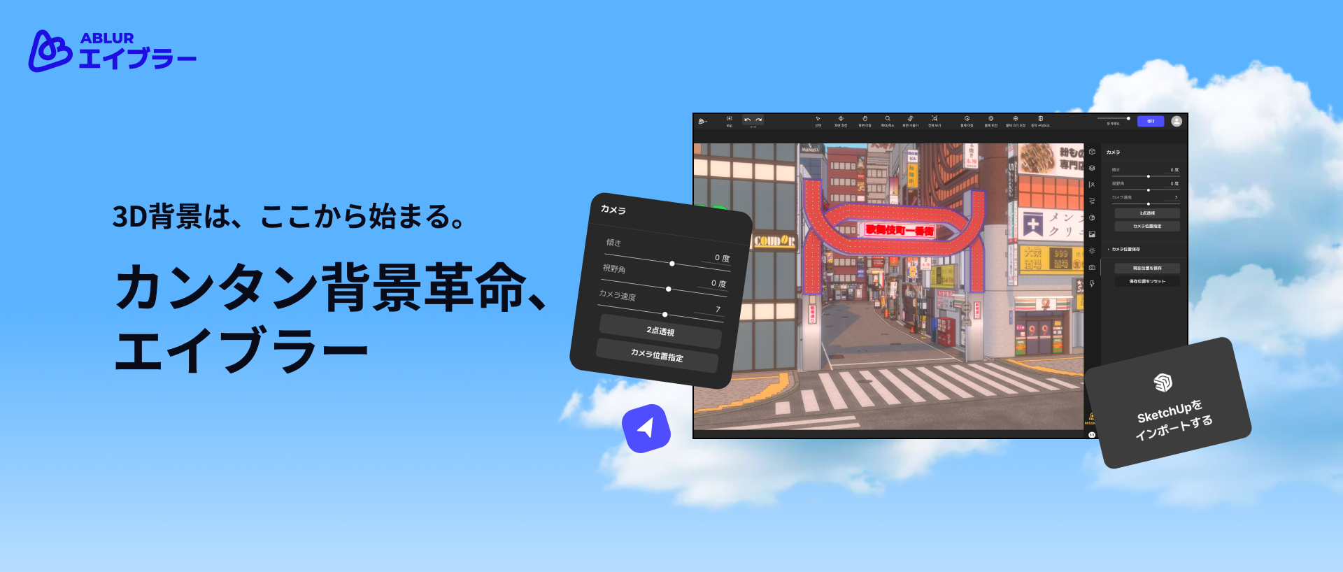 「カンタン背景革命、エイブラー」は、漫画家がこれ以上「背景」に悩まなくてすむように生まれた、漫画制作に特化した3D背景作画ソフトです。