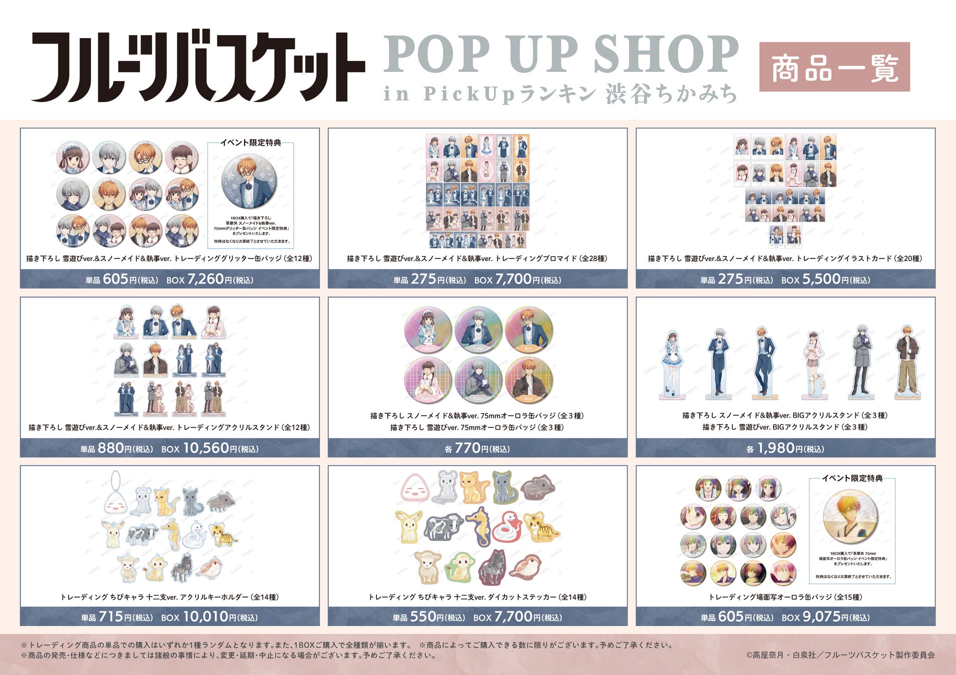 【「『フルーツバスケット』POP UP SHOP in PickUpランキン 渋谷ちかみち」内へのご案内について】