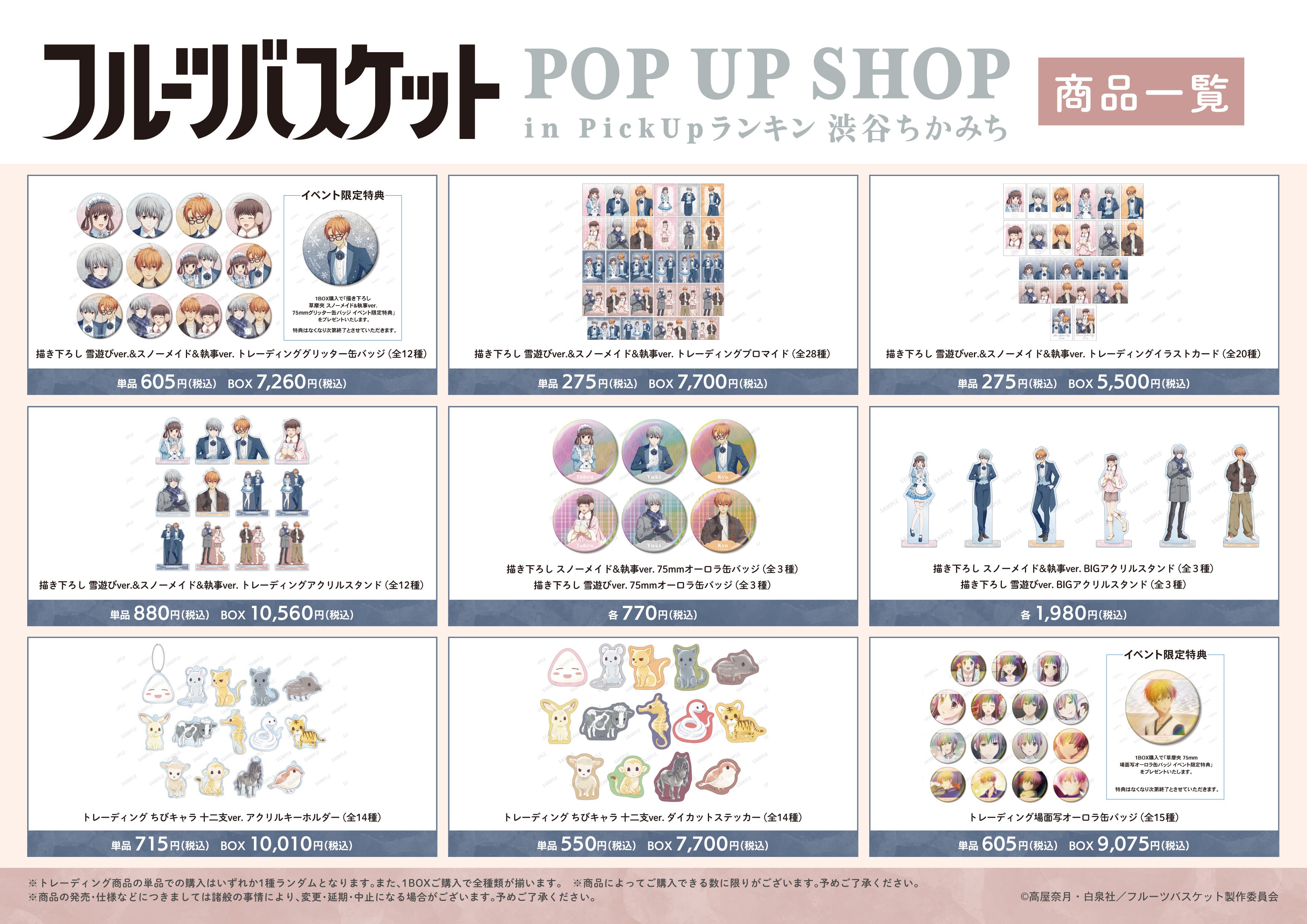 【「『フルーツバスケット』POP UP SHOP in PickUpランキン 渋谷ちかみち」内へのご案内について】