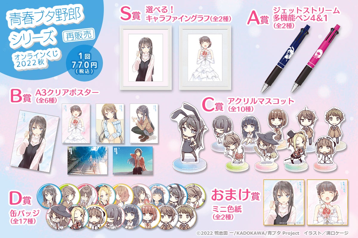 <「青春ブタ野郎」シリーズ オンラインくじ 2022 秋 再販売 概要>