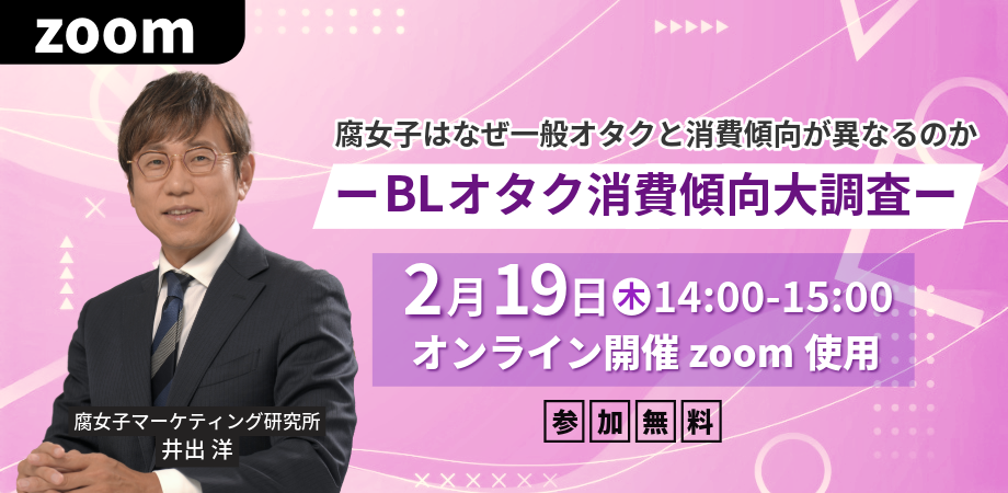 BLをはじめとするさまざまなジャンルのコンテンツへの投資事情を知ることは、女性オタクの解像度を上げることに直結します。より確度の高いプロモーションの指針として本ウェビナーをお役立ていただければと存じます。ご関心のある方はぜひご参加ください。