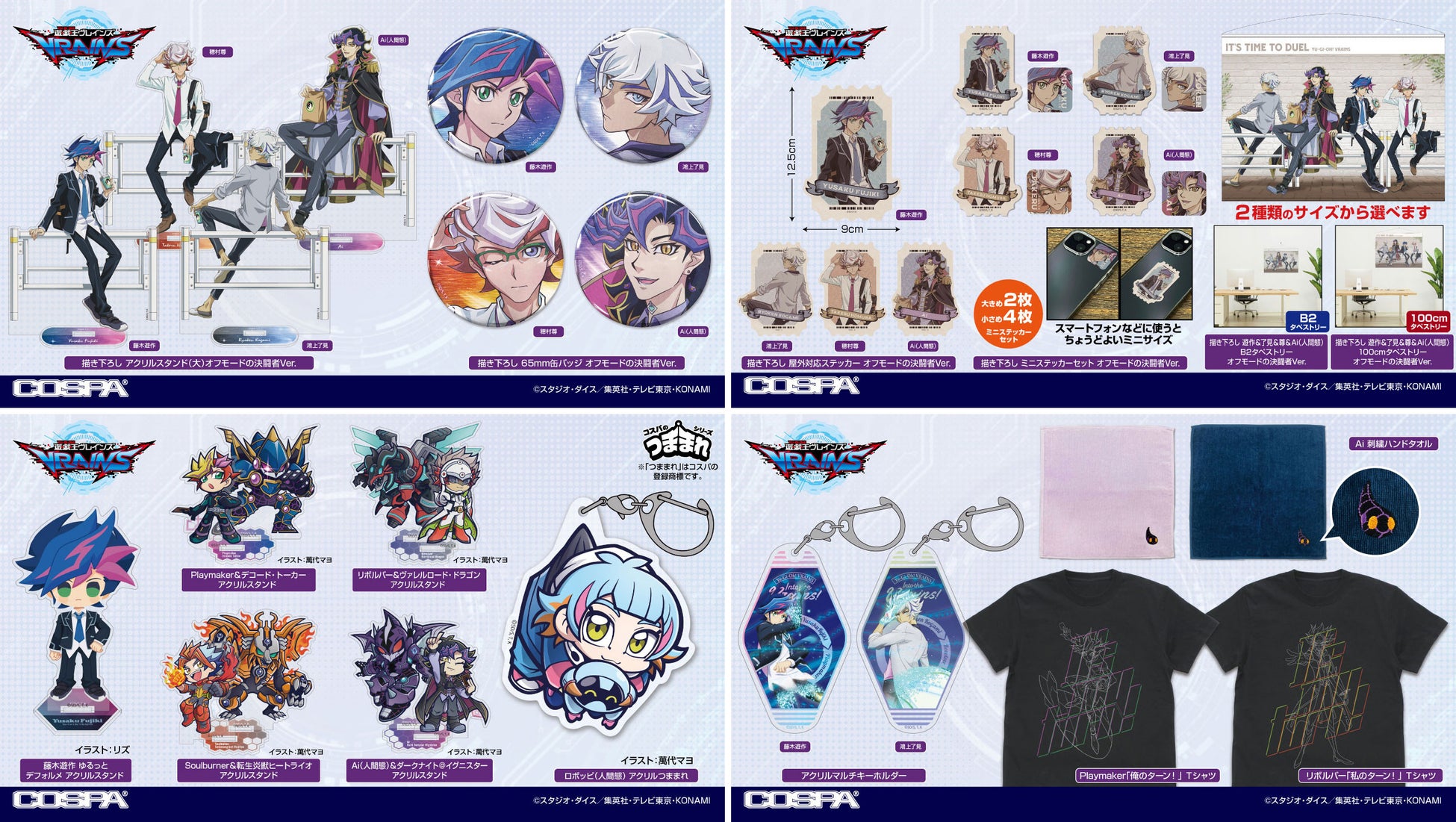 公式キャラクターコスチュームやアパレル・グッズの企画、開発、製造を行う株式会社コスパは『遊☆戯☆王ARC-V』『遊☆戯☆王VRAINS』新グッズ・予約特典キャンペーンを発表した。