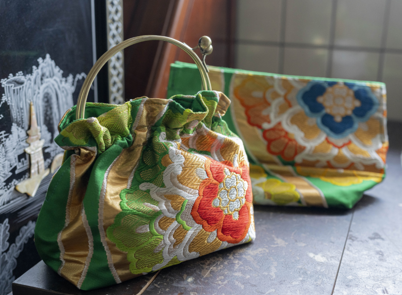 (2)ブラウンハウス制作の着物生地を用いた商品(帯、小物、クッションカバー等)の展示・販売コーナー。商品の一部は会場限定販売とし、売上の一部は制作に携わった利用者へ還元します。