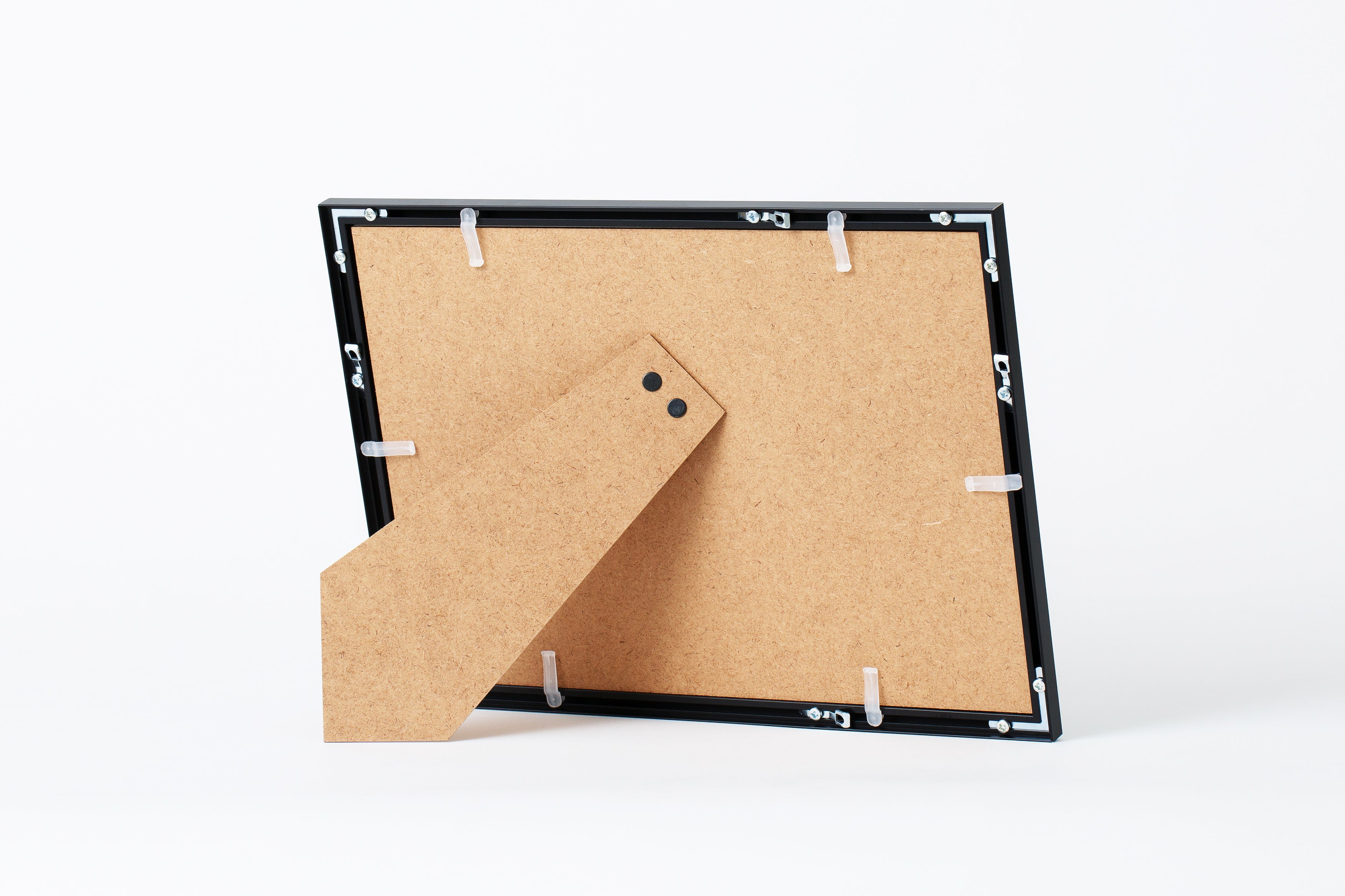 A4サイズの裏面にはスタンド機能を備えており、壁掛けだけでなく棚やデスクに立て掛けて飾ることも可能です。