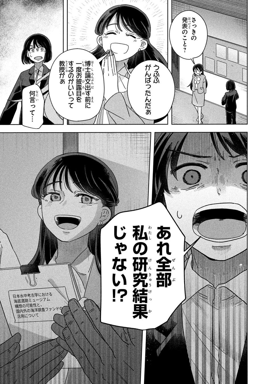 保険会社に勤める未桜(みお)は、大学時代の同級生・麗子(れいこ)に人生のすべてを捧げていた研究成果を奪われ、長い間鬱屈した日々を過ごしていた。