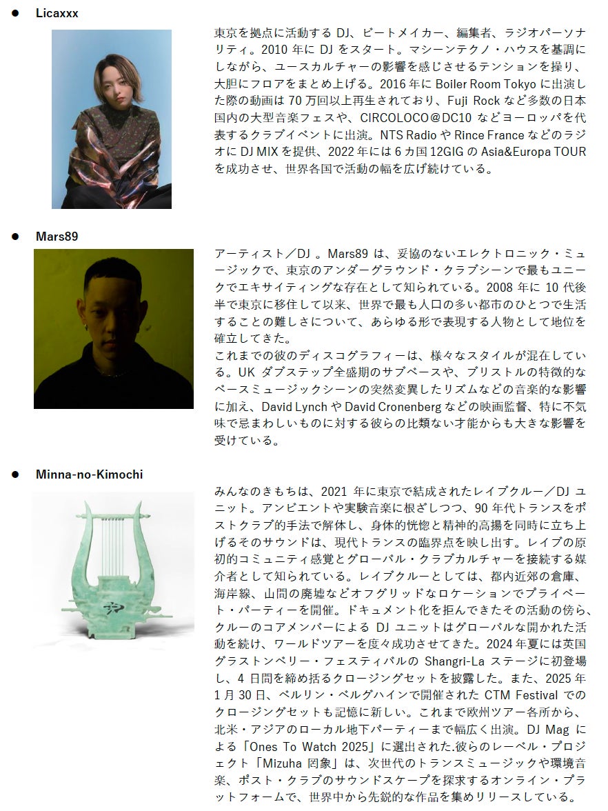電子音楽とテクノロジーの進化、その時間軸を横断する最終日。『攻殻機動隊』的な技術観を背景に、テクノやジャングルを支えてきたベテランから次世代へ、音と思想が受け渡されるクロージングナイトです。