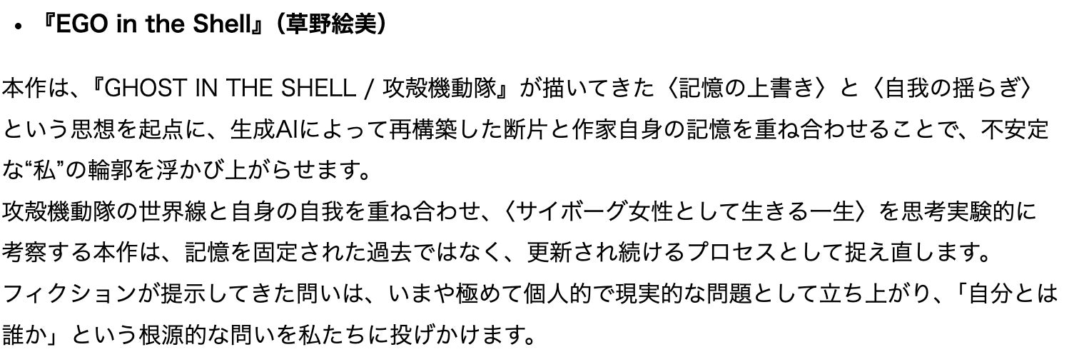 『攻殻機動隊』が描いてきたAIと創造性を手がかりに、AI・都市・音楽が再構成される時代背景のもと、人間とAIの共創の可能性を多角的に掘り下げます。