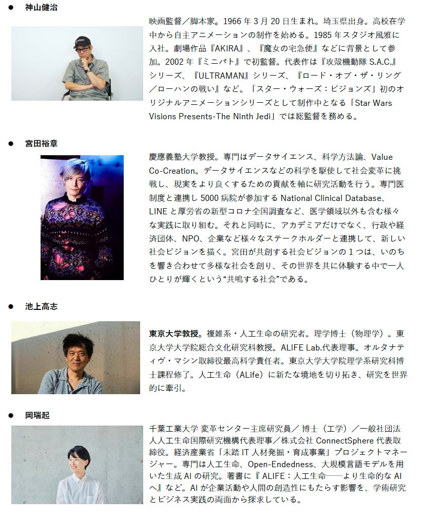 トークシリーズ「DIALOGUE of Ghost and the Shell」:神山健治監督×宮田裕章(1/30)ほか、VERBALや魚豊をはじめ、人工生命・生成AI・音楽・ファッション・ナラティブなど多彩な軸で文化人らが集い、本作の核心にせまるトークセッションを会期中約20回予定。会期全体スケジュールを公開。