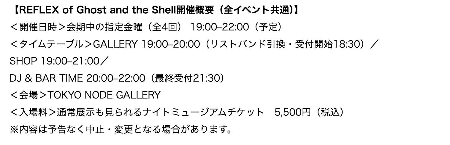特別イベント②【週末ナイトミュージアム「REFLEX of Ghost and the Shell」】