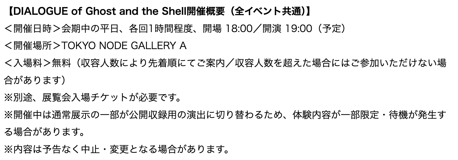 特別イベント①【トークセッションシリーズ「DIALOGUE of Ghost and the Shell」】