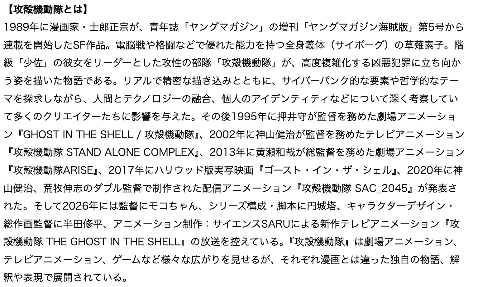 原作:士郎正宗(講談社 KCデラックス刊)