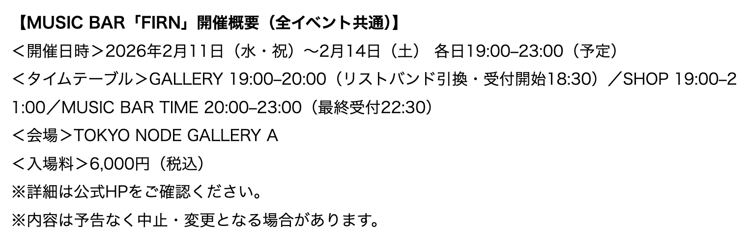 特別イベント③【 MUSIC BAR「FIRN」(4日間限定)】