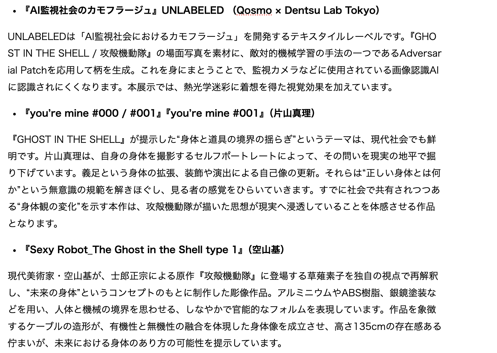 攻殻機動隊展Ghost and the shell製作委員会のプレスリリース
