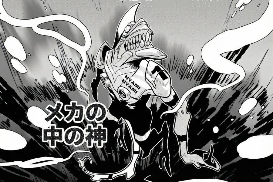 ジンバブエ神話の魚蛇神「ニャミニャミ」が巨大メカとして登場。「信仰(FAITH)」をエネルギー源とする世界で、信仰を持たない少年が戦うSFアクションです。