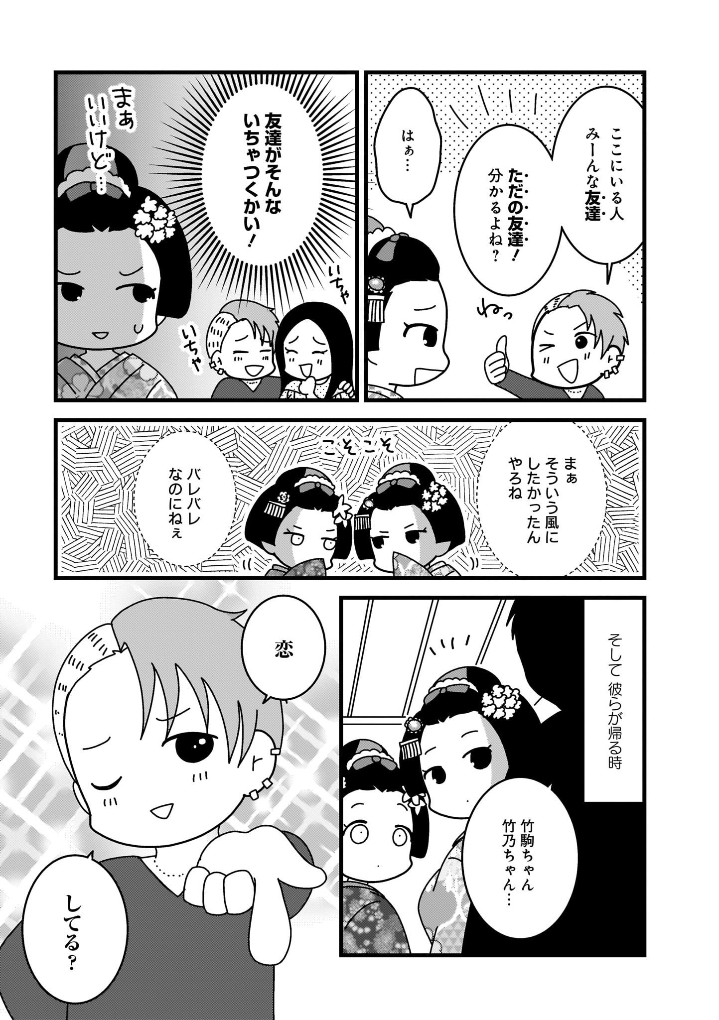 連日深夜まで続くお座敷での労働、お客さんからのアルハラ・セクハラ、置屋のお母さんからの体罰とも言える躾に、竹駒の心と身体はもう限界。