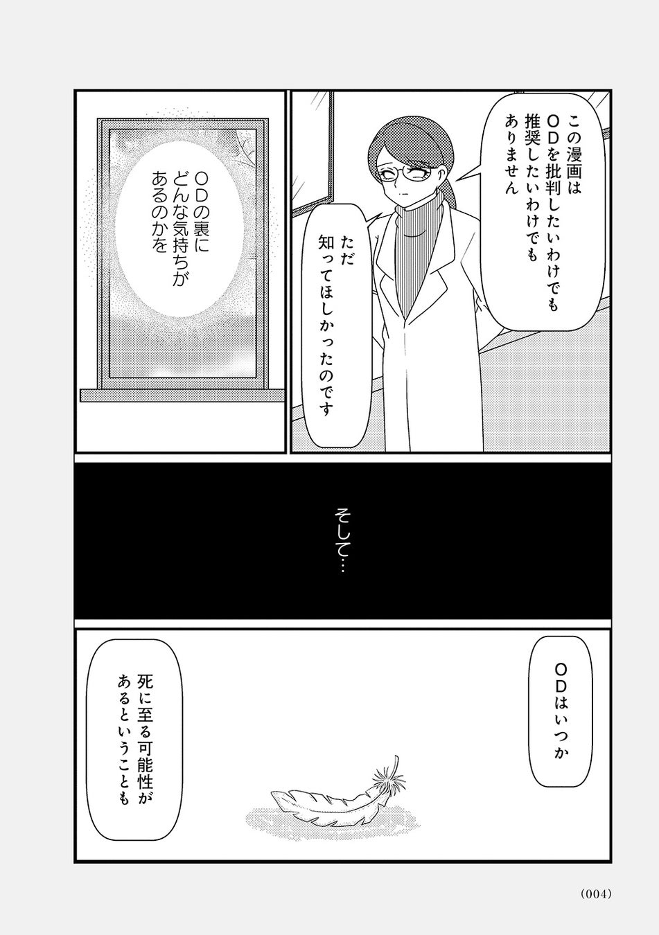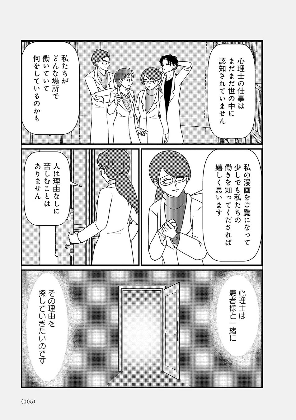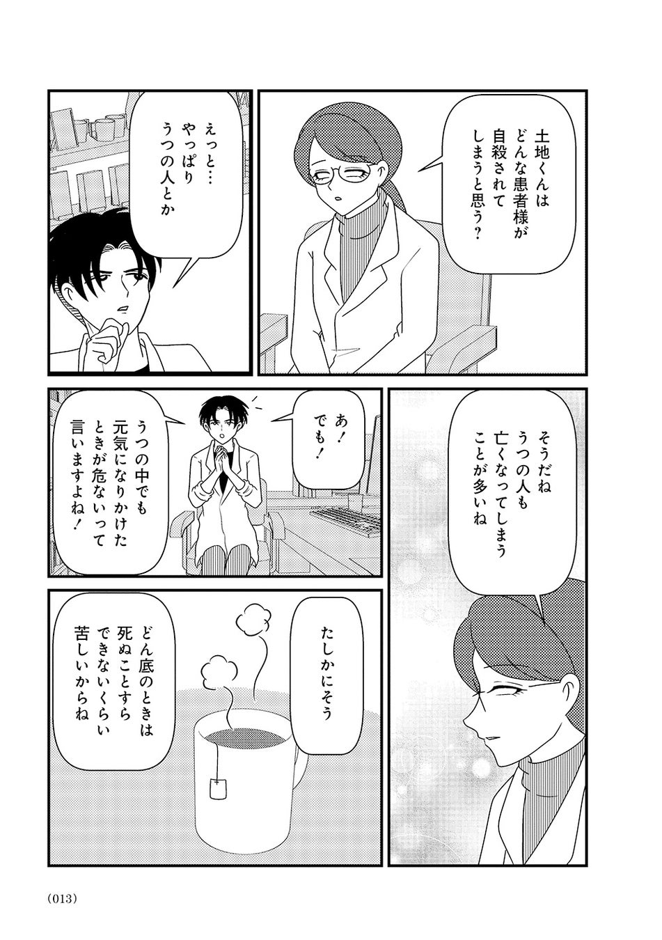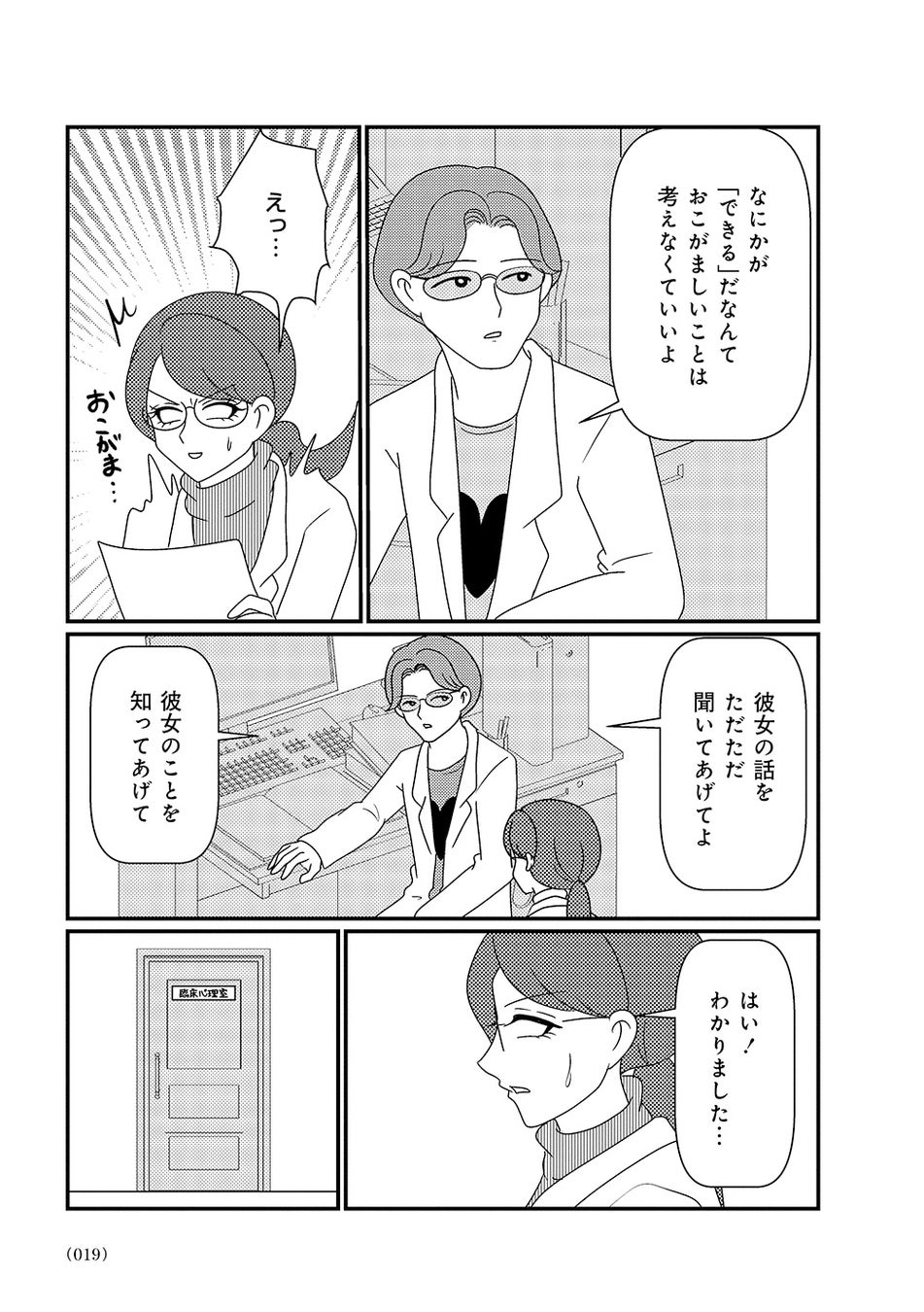 オーバードーズ(薬の過剰摂取)と自殺未遂を繰り返す患者様とのカウンセリングは先行きが見えず、担当心理士の白目みさえは思い悩んでいた。唯一の希望は患者様がカウンセリングを拒否したり、無断キャンセルしたりすることがないこと。辛抱づよくカウンセリングを続ける患者様と白目との間で、少しずつ会話が増えていく。