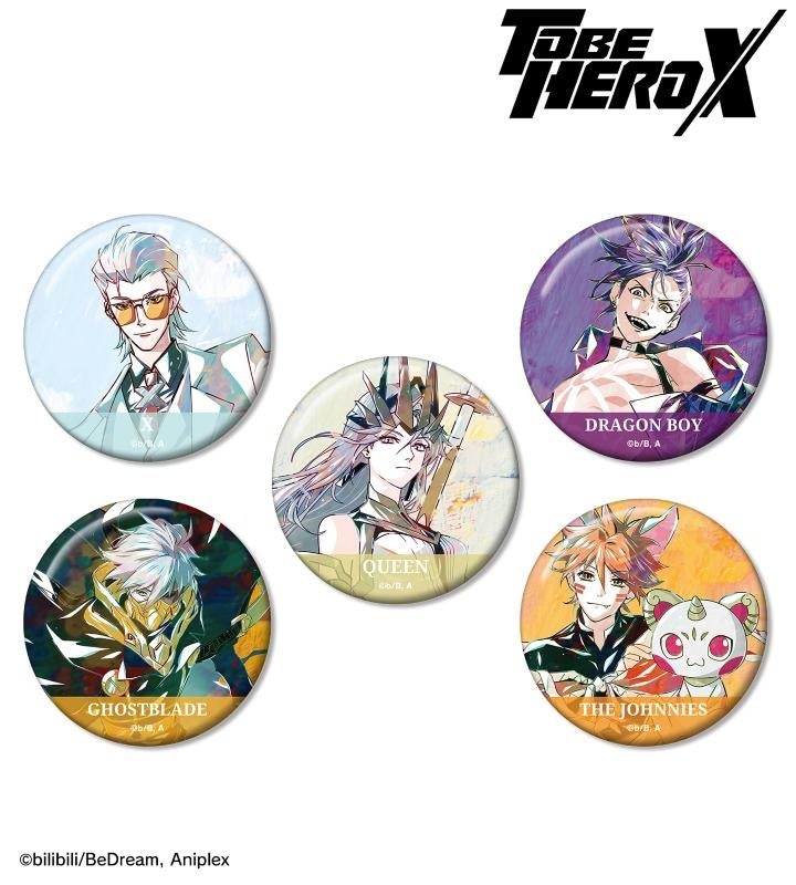 X、クイーン、梁龍、黙殺、リトルジョニー&ビッグジョニーのイラストを新たなタッチで魅力的に表現し、缶バッジ5個セットに仕上げました。