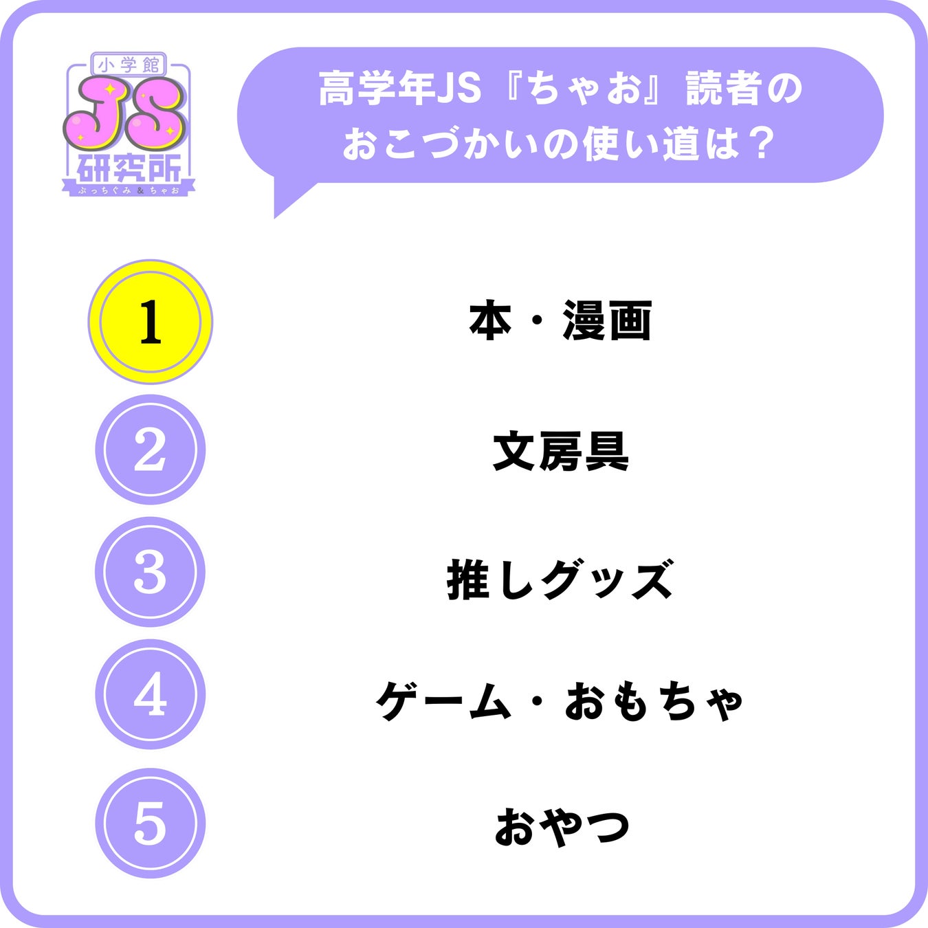 ★ おこづかいの使い道、低学年JSでは「ゲーム・おもちゃ」が1位、高学年JSでは「本・漫画」が1位となり「文房具」「推しグッズ」が上位へ