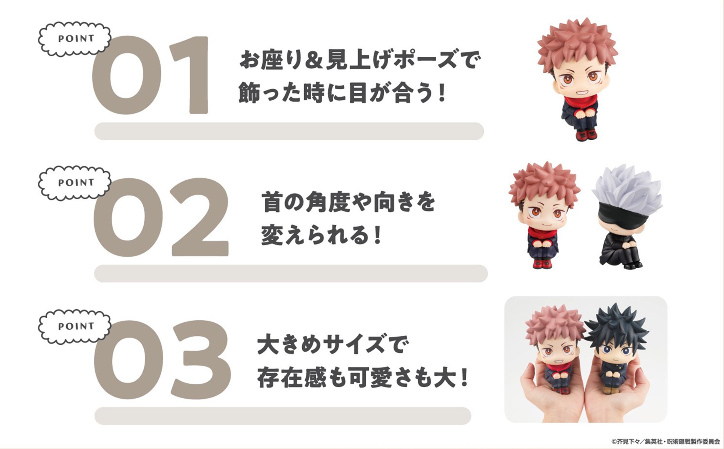 「るかっぷ」は「look up(見上げる)」を元にした造語で、あなたを見上げて見つめているような、可愛い仕草が特徴のフィギュアシリーズです。「見上げ&おすわりポーズ」で、デスクの上などに飾ったとき、通常のフィギュアと比べて目が合いやすくなっています。首は可動で表情をつけることができます。