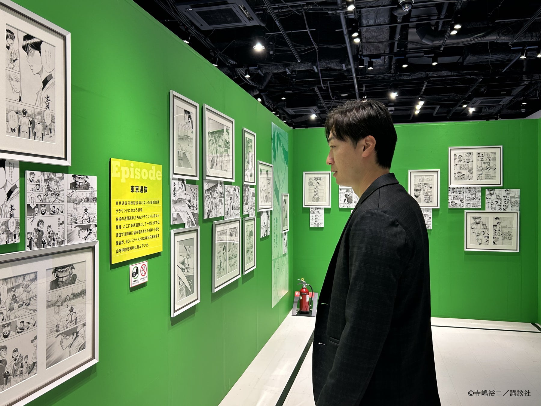なかでも、青道高校野球部の部室を完全再現した「部室再現コーナー」では、ロッカーを見ながらキャラクターそれぞれの個性について語る場面や、自身の高校時代の思い出を振り返る姿が見られ、原画展ならではの特別な体験を楽しまれていました。