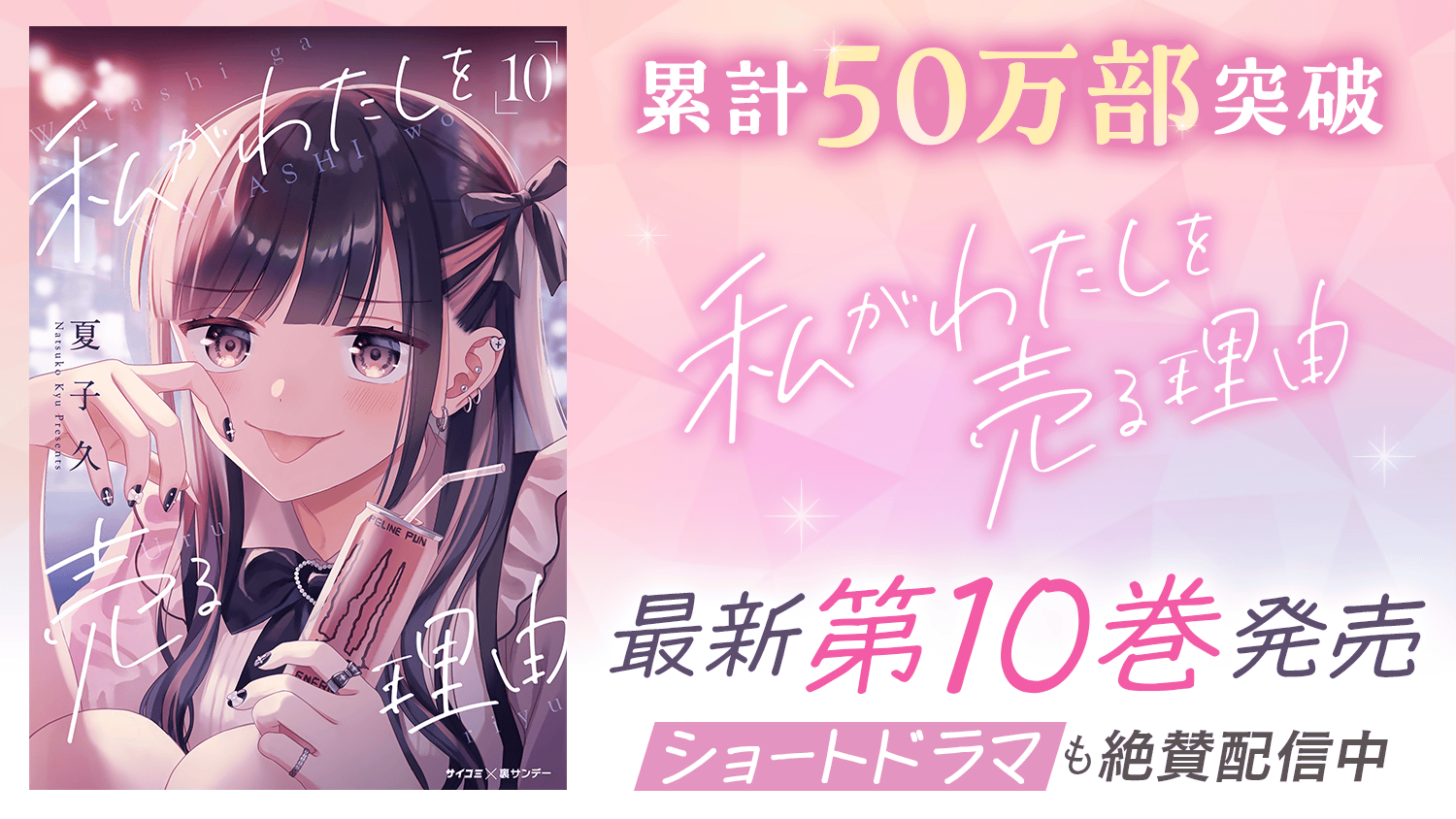 『私がわたしを売る理由』は、経済面や家庭環境の理由から“パパ活”を始める女性たちのリアルをオムニバス形式で描くヒューマンドラマ作品で、コミックスの累計部数は50万部(※)を突破しています。本作は実写化もされ、ショートドラマアプリ「BUMP」にて好評配信中です。映像でもパパ活のリアルな実態と、スリリングな愛憎劇をお楽しみください。