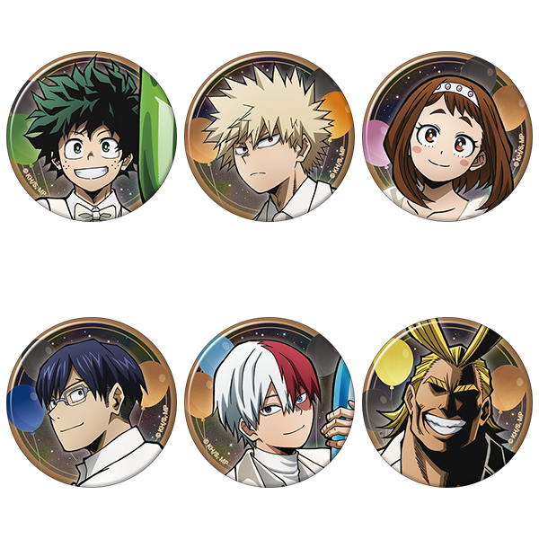 新規描き下ろしビジュアルを使用した「アクリルスタンド」や「オーロラキャラバッジコレクション」などの新商品が多数発売! 緑谷出久や爆豪勝己ら6人がフォーマルな衣装に身を包んだ10周年のお祝いにぴったりな描き下ろしビジュアルとなっています。