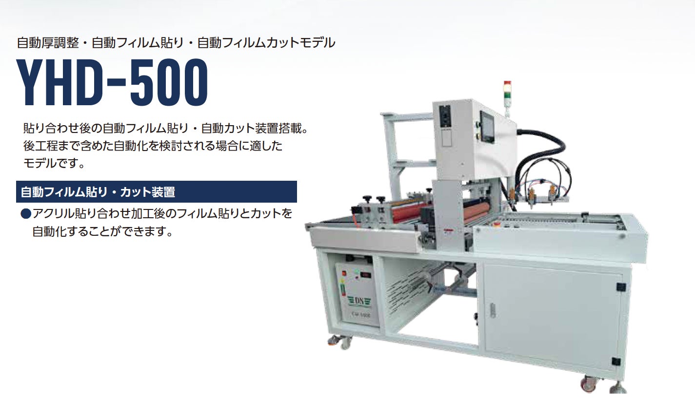 仕様;アクリル貼り合わせ加工後のフィルム貼りとカットを自動化することができます