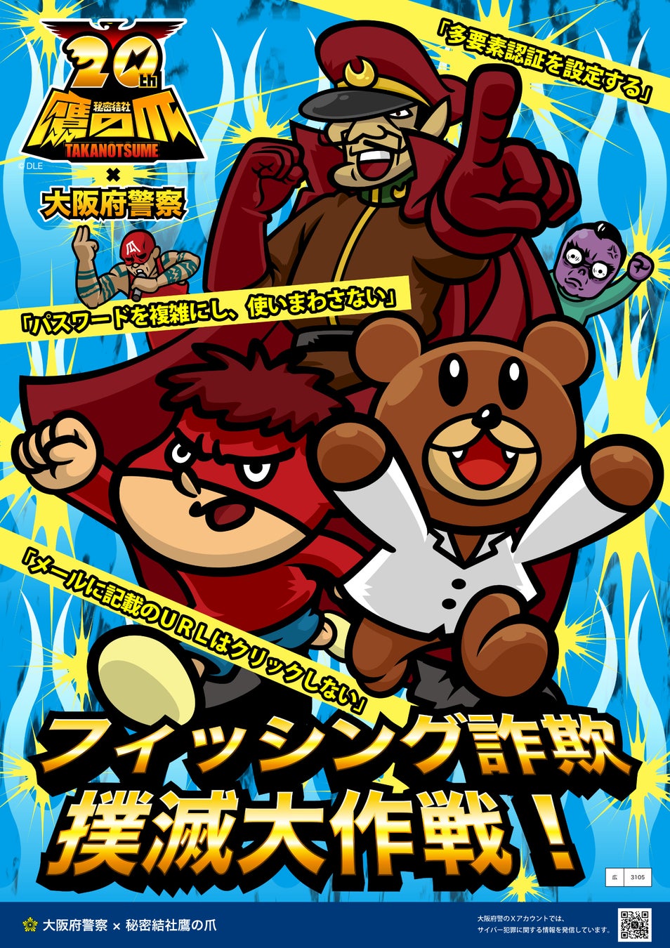 株式会社ディー・エル・イー(本社:東京都千代田区、代表取締役社長 CEO・CCO:小野 亮、以下DLE)は、大阪府警察本部が実施するサイバーセキュリティ啓発キャンペーンにおいて、アニメ『秘密結社 鷹の爪』のキャラクター「吉田くん」を起用した広報啓発施策を行ったことをお知らせいたします。