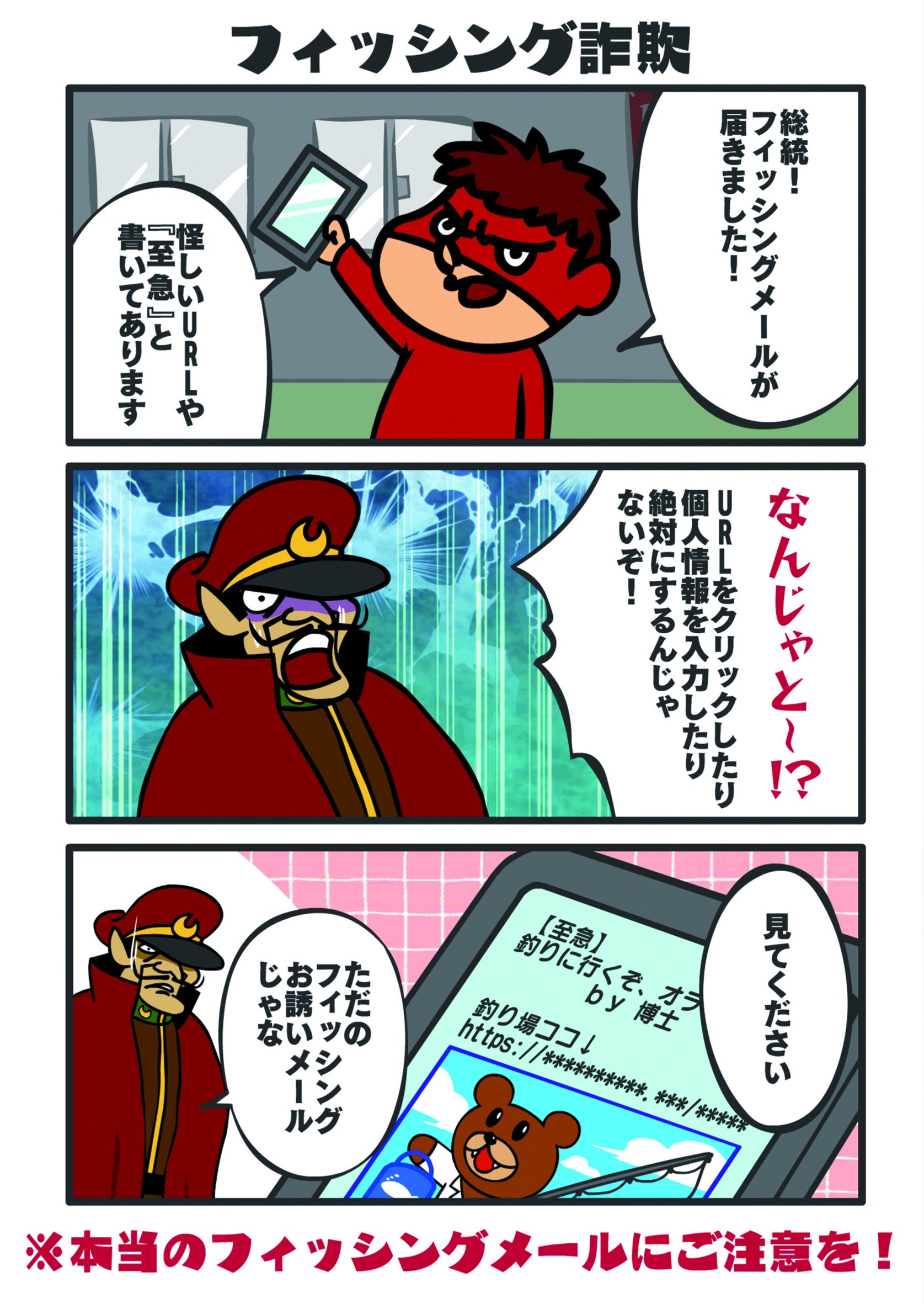 本キャンペーンにおいて、親しみやすくユーモアのある『秘密結社 鷹の爪』ならではのキャラクター表現を通じて、フィッシング詐欺や不正アクセスなど、近年巧妙化するサイバー犯罪の脅威と、その対策の重要性を、幅広い世代にわかりやすく伝えています。