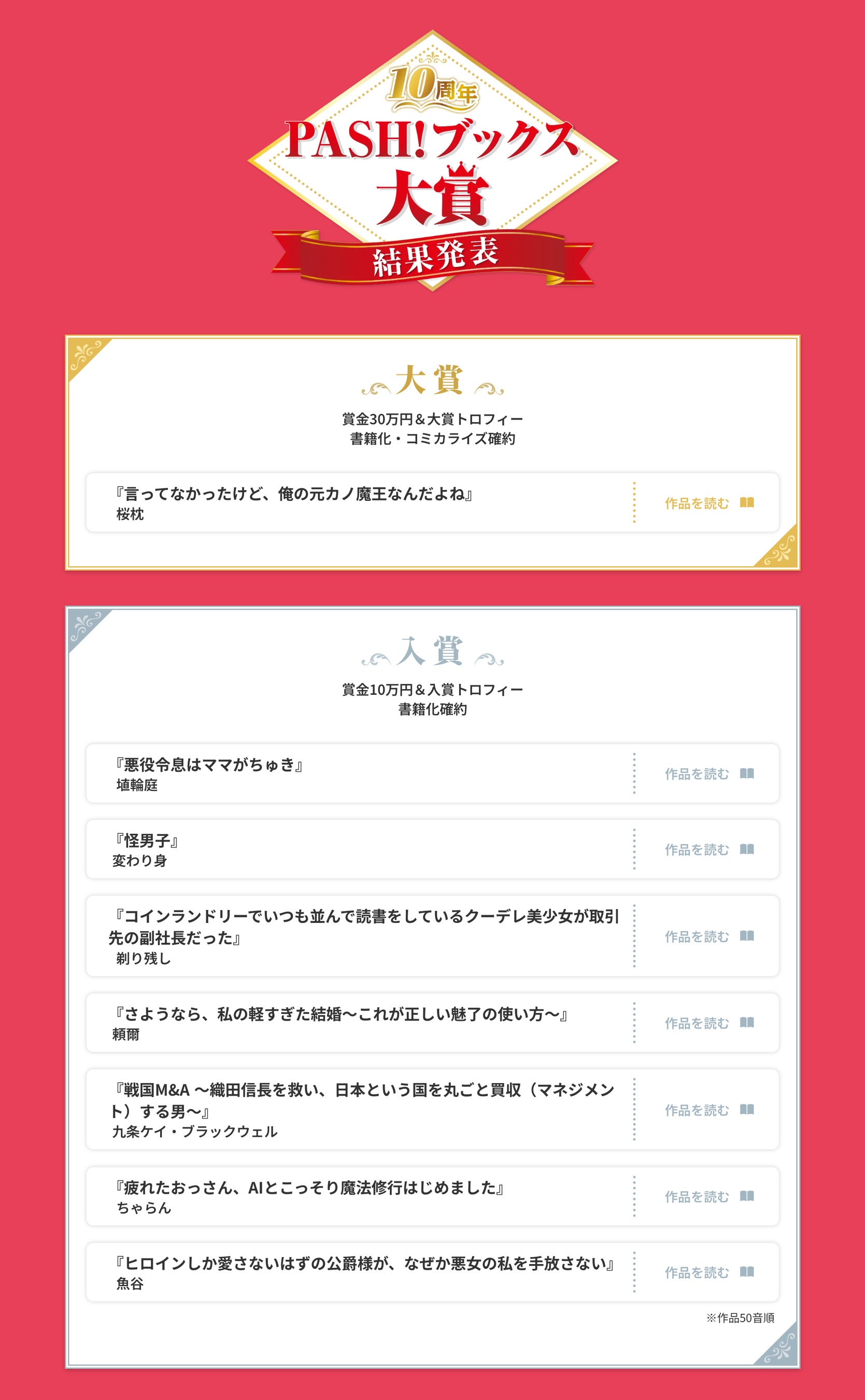 『10周年PASH!ブックス大賞』にたくさんのご応募をいただき、
