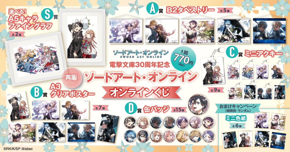 株式会社KADOKAWA(本社:東京都千代田区、取締役 代表執行役社長 CEO:夏野 剛、以下 KADOKAWA)は、運営するオンラインくじサービス「くじ引き堂」において、電撃文庫『ソードアート・オンライン』の豪華賞品が手に入る<【再販】電撃文庫30周年記念『ソードアート・オンライン』オンラインくじ>を、2026年2月10日(火)12時より販売します。