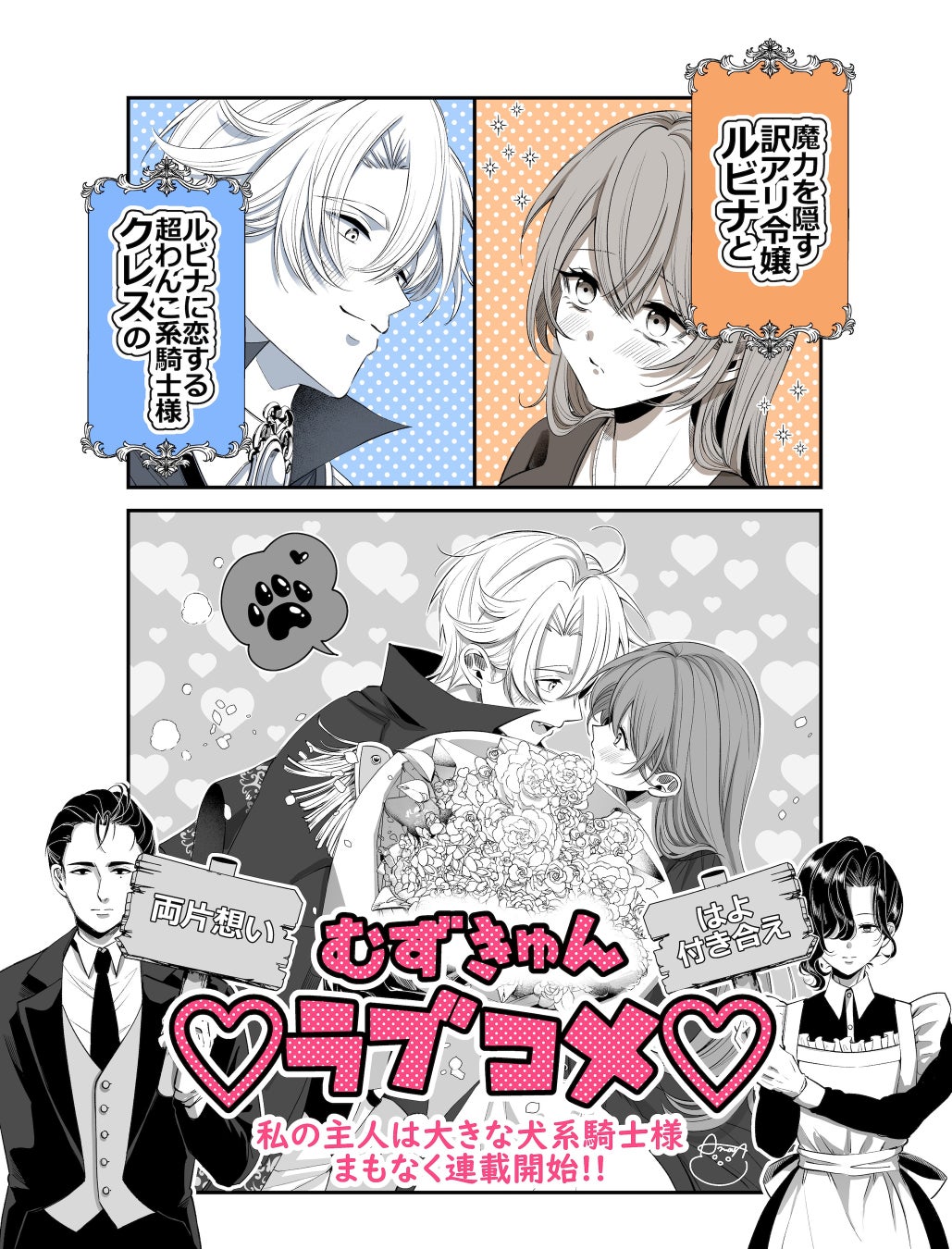 ライトノベル作家・結生まひろ先生の小説デビュー作『私の主人は大きな犬系騎士様』(PASH!ブックスFiore)のコミカライズ連載が開始します!
