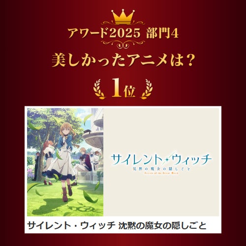 “オススメしたいアニメ部門”に続いて“美しかったアニメ部門”の第1位は『サイレント・ウィッチ 沈黙の魔女の隠しごと』!!
