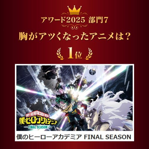 “胸がアツくなったアニメ部門”の第1位は『僕のヒーローアカデミア FINAL SEASON』!!