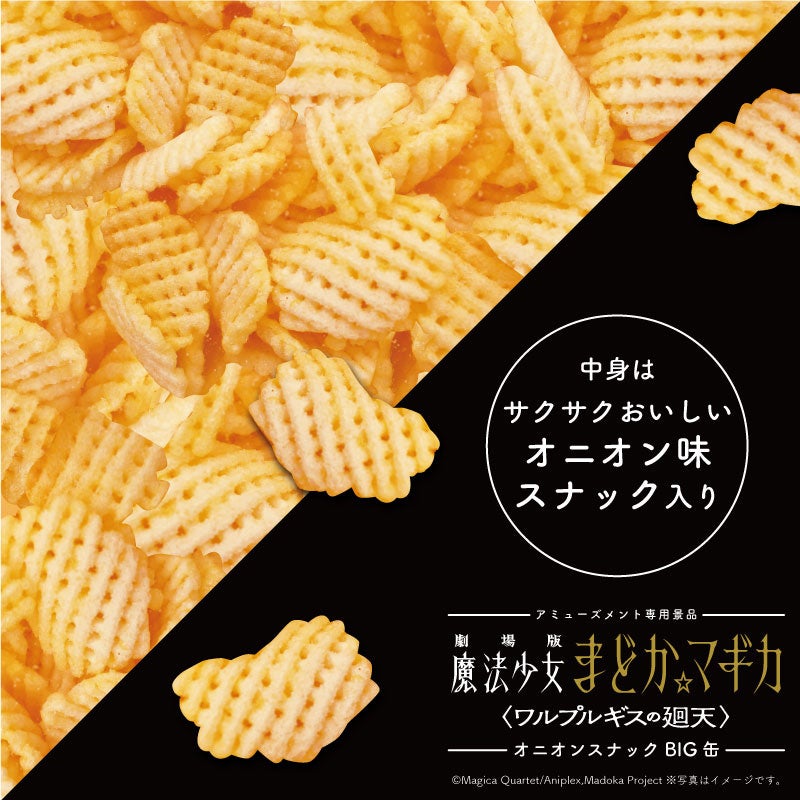 「劇場版 魔法少女まどか☆マギカ 〈ワルプルギスの廻天〉」オニオンスナック入りのBIG缶がアミューズメント施設・オンラインクレーンゲームにて3月に登場!