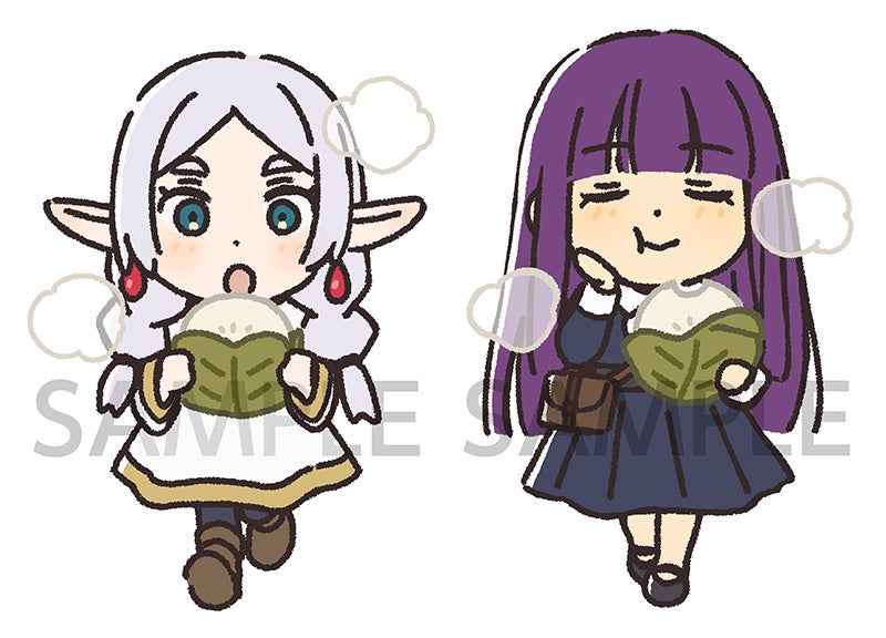 今回のアニメイト特典には、お出かけ中のフリーレンとフェルンの様子を切り取った描き下ろしイラストを使用。フェルンが着ているのはシュタルクとのデートでは選ばなかった方のワンピース。テラス席で肉まんを持ちながら楽しそうに話しかけるフェルンと、優しい表情で耳を傾けるフリーレン。