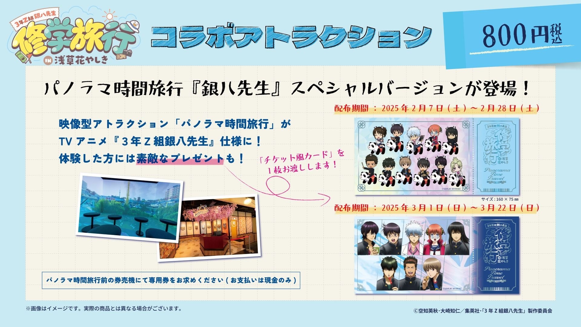 4面マルチ映像を楽しめるアトラクション「パノラマ時間旅行」がTVアニメ『3年Z組銀八先生』仕様のスペシャルバージョンに!これまでの「3年Z組銀八先生」の歴史を振り返ろう!体験された方には「チケット風カード」(前半 全1種/後半 全1種)を1枚プレゼントします。