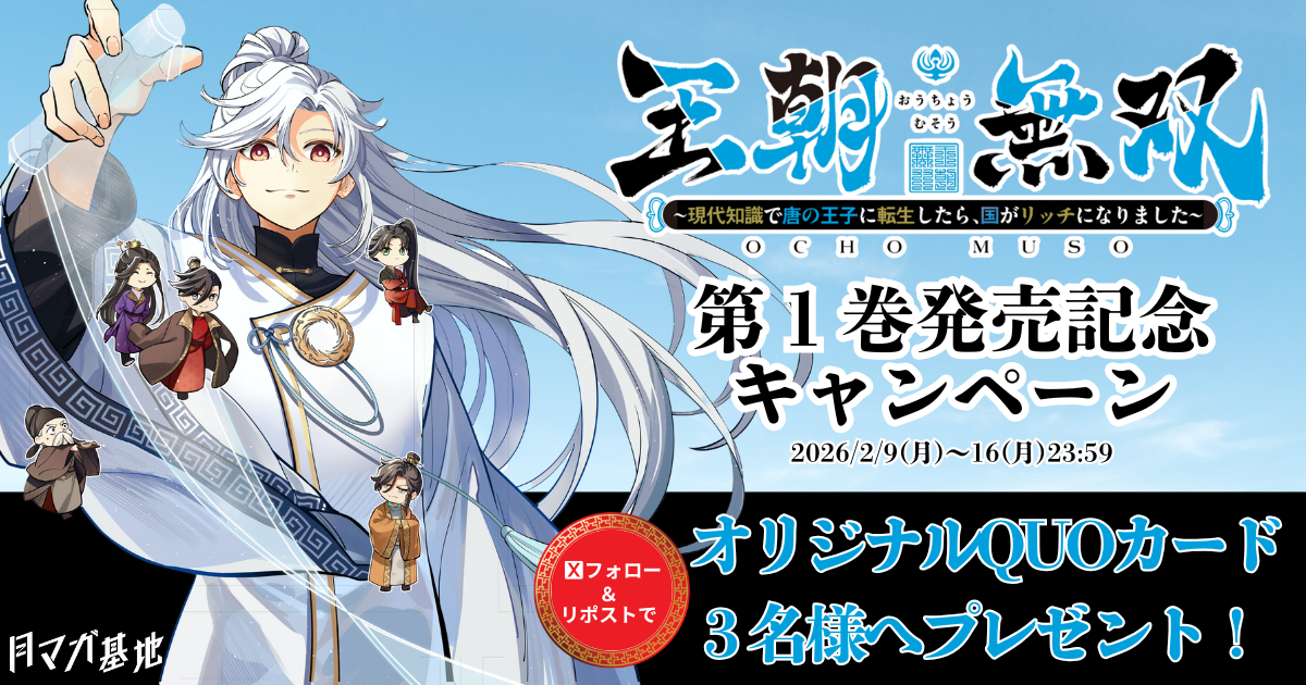 「月マガ基地」公式アカウント(@getsumagakichi)をフォローし、「#王朝無双」「#日中合作漫画」のついたキャンペーン投稿をリポストしてください。(キャンペーン投稿に、作品についての感想や応援コメントをすると、当選確率がUP!)