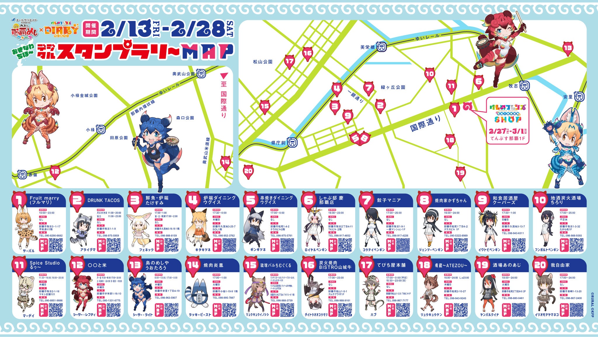 けものフレンズプロジェクトは、沖縄県で開催される「わったー那覇めしウォーク」とコラボし、飲食店を巡るデジタルスタンプラリーを2026年2月13日(金)から2月28日(土)まで実施する。この度、「わったー那覇めしウォーク」参加20店舗を公開。期間中対象店舗やスポットで取得できる「フレンズ証明書」を集めると、達成条件に応じて限定グッズをプレゼントする。