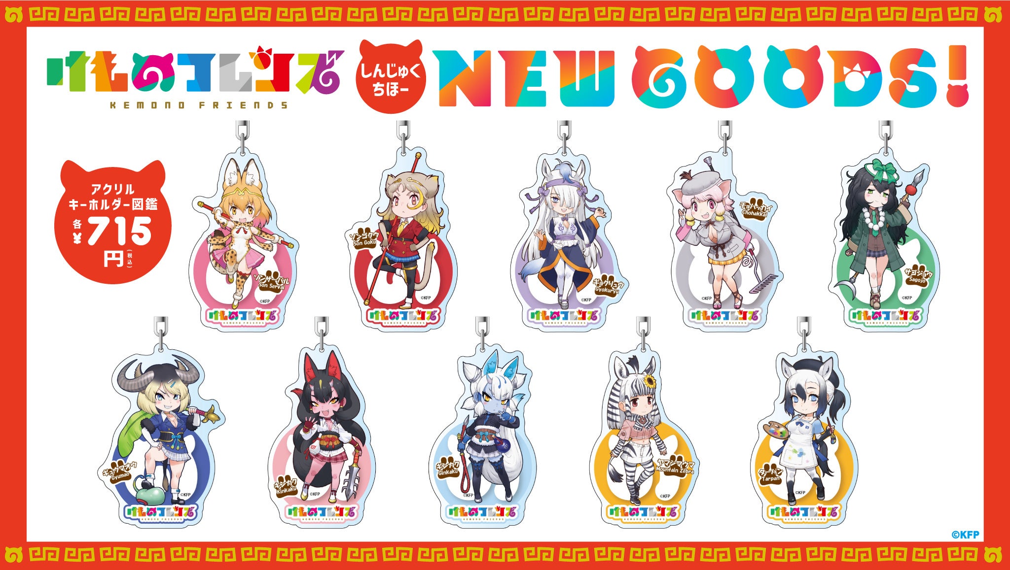 さらに「けものフレンズ3 2026 SHOP」では、アプリゲーム「けものフレンズ3」内イベントで昨年好評だった「けもの西遊記」の主要キャラクターたちが勢揃いした華やかなキービジュアルを解禁した。新グッズとして、「けもの西遊記」キャラクターのアクリルキーホルダー図鑑も販売する。