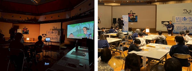 また翌7日(土)には、夕鶴の里資料館にて同作品の上映会を開催しました。このイベントは、次世代へ豊かで美しい海を引き継ぐために、海を介して人と人とがつながる“日本財団「海と日本プロジェクト」”の一環で実施しています。