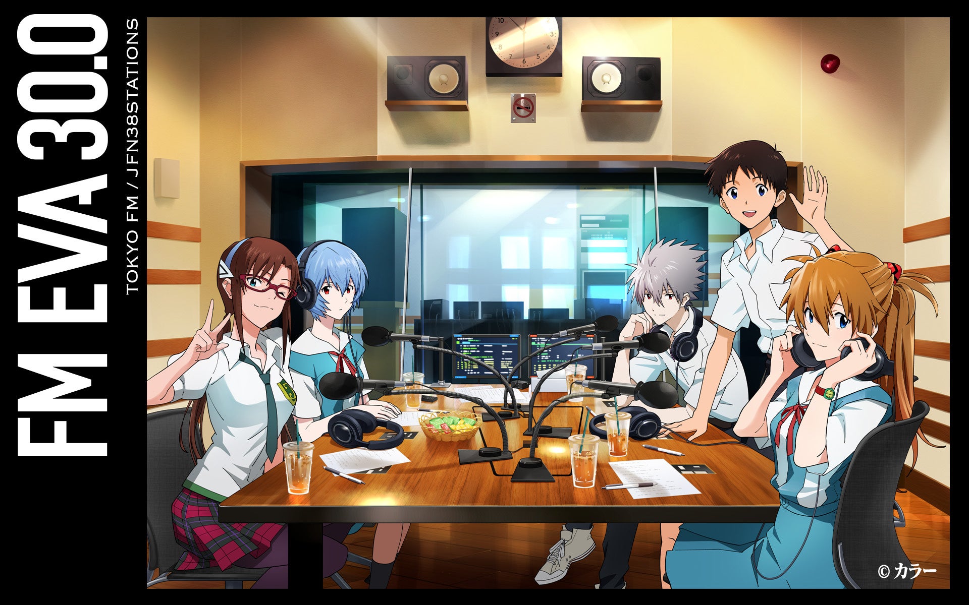「FM EVA 30.0」と東京タワーがコラボレーションを記念して、TOKYO FMのスタジオで5人のエヴァパイロットと番組をお届けする、葛城ミサトや碇ゲンドウといった特務機関NERVに所属する職員が描かれた第3弾ビジュアルの公開もスタート! このビジュアルは、2月21日(土)、東京タワーメインデッキ1階の大型ビジョンにも投映されます。