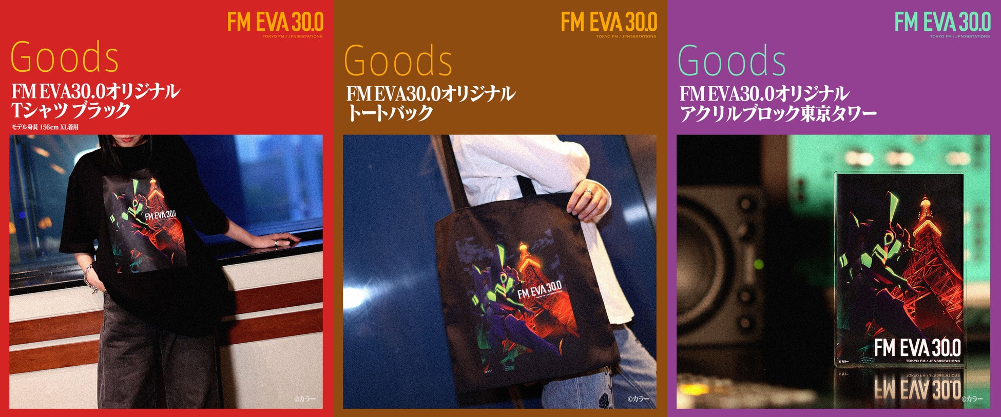 今回のコラボは、『エヴァンゲリオン』シリーズ初のレギュラーラジオ番組「FM EVA 30.0」のメインビジュアルにおいて、夜の東京タワーと共にそびえ立つエヴァンゲリオン初号機の描き下ろしイラストが制作されたことがきっかけとなり、実現しました。