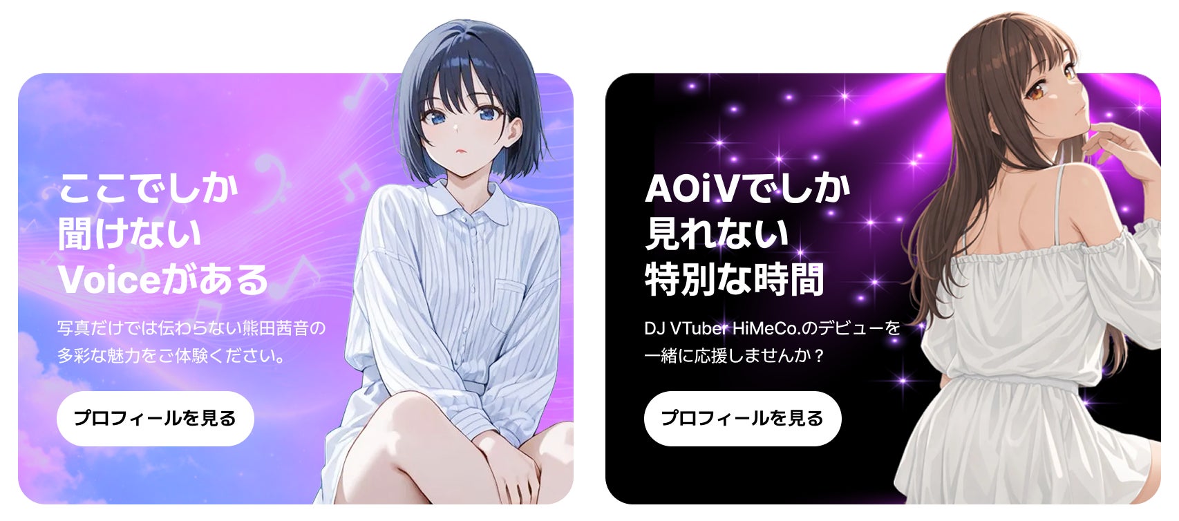 オーディションで発掘された才能が、実際の活動へとつながる場を提供することで、AOi Vは次世代クリエイターの継続的な活躍を支援してまいります。