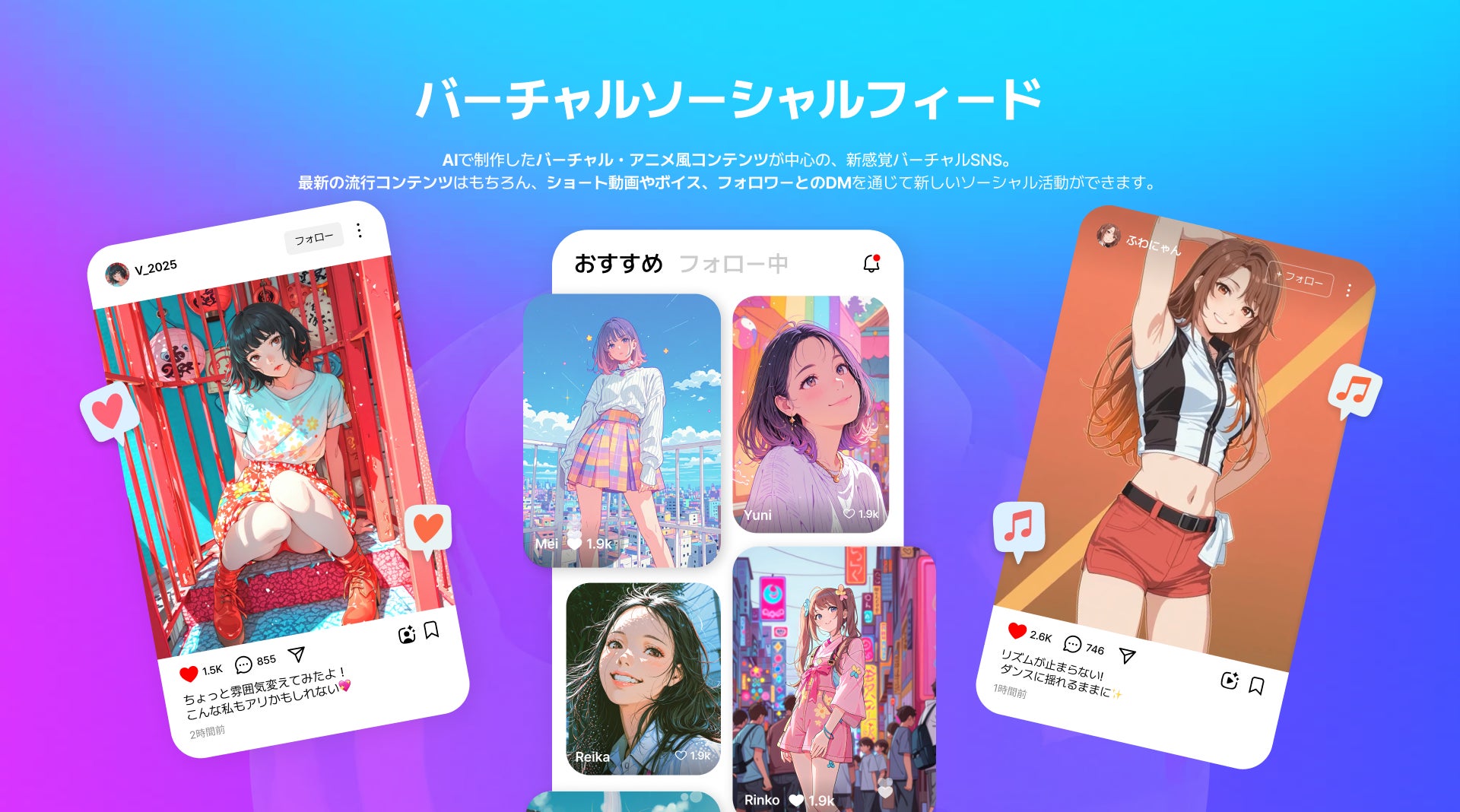 高品質な2D/3Dアバター機能をはじめ、クリエイターとファンがより近い距離で交流できる設計により、従来のSNSとは異なる“新しい自己表現とつながり方”を提供します。