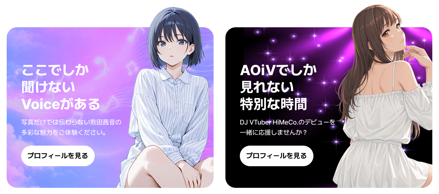 オーディションで発掘された才能が、実際の活動へとつながる場を提供することで、AOi Vは次世代クリエイターの継続的な活躍を支援してまいります。