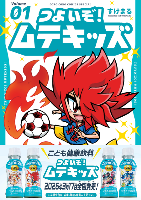 株式会社小学館(以下、小学館)は、2月27日(金)に小学館の「月刊コロコロコミック」連載中の漫画「つよいぞ!ムテキッズ」の単行本を発売します。また、キリンビバレッジ株式会社(社長 井上一弘、以下キリンビバレッジ)は同キャラクターを起用した子ども健康飲料「キリン つよいぞ!ムテキッズ100mlPET」を3月17日(火)に全国で展開します(一部地域で紙パックの先行販売実績あり)。小学館とキリンビバレッジは、漫画と飲料を通じた共同プロジェクトとして、子どもたちの「ムテキになりたい」を出発点に、心と体の健やかさを社会へ広げていきます。