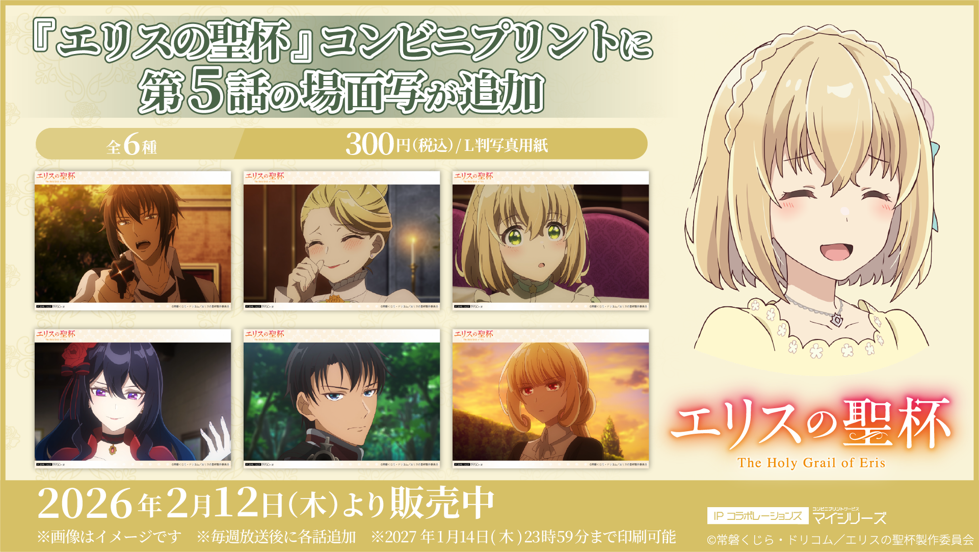 全国の対象コンビニで利用可能なプリントサービスとして提供中のTVアニメ『エリスの聖杯』コンビニプリントの「場面写」に第5話を追加しました。